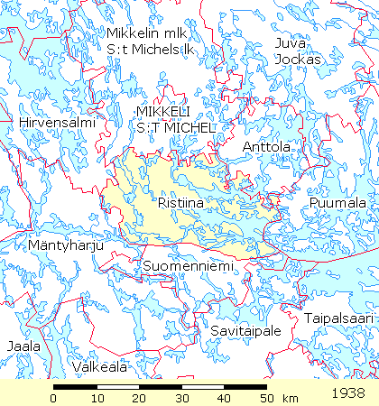 Ristiina 1 : 100 000 Maanmittaushallitus 1943 kartta Kunto Ristiina Ristiinan kk (ruutu 682:351) Lintuatlas